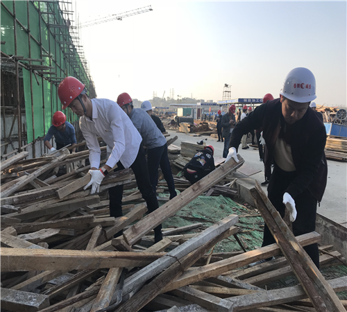 當(dāng)天,二支部全體黨員前往馬壕污水處理廠擴(kuò)容工程現(xiàn)場(chǎng)參觀學(xué)習(xí)。項(xiàng)目負(fù)責(zé)人詳細(xì)的介紹了項(xiàng)目基本情況,并帶領(lǐng)全體黨員在現(xiàn)場(chǎng)開展治理?yè)P(yáng)塵、搬運(yùn)模板、構(gòu)件等志愿服務(wù)活動(dòng)。黨員們佩戴黨徽,頭戴安全帽,以一名項(xiàng)目建設(shè)者的身份積極參加馬壕污水處理廠現(xiàn)場(chǎng)建設(shè),以實(shí)際行動(dòng)支持項(xiàng)目建設(shè),助推重點(diǎn)工程進(jìn)度。